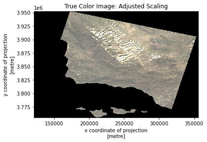 # Select bands and create True Color image (adjusting for cloud coverage)