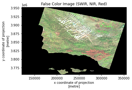# Select bands for False Color image (Short Wave Infrared, Near-Infrared, and Red Bands)